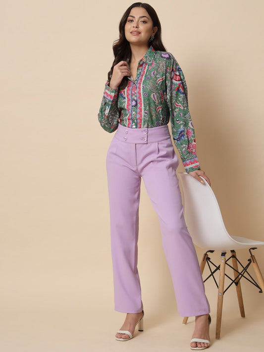 Beatnik Printed Crepe Button-Down Green Shirt