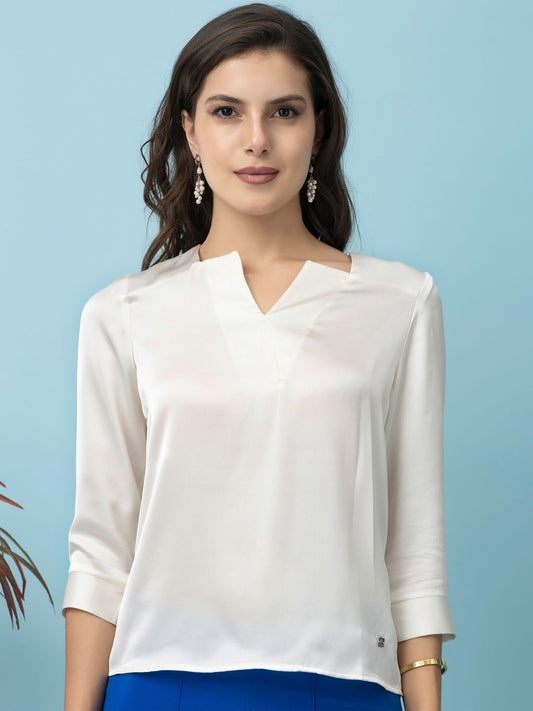Satin V-Neck Hip-Length Top with 3/4th Cuffed Sleeves