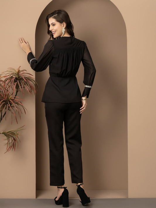 Crepe Cuffed Sleeves High Rise Bottom Sandy Brown Co-ords