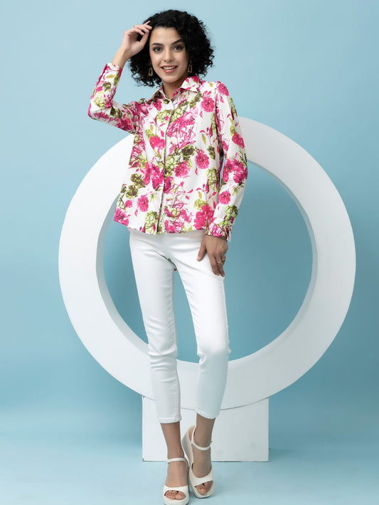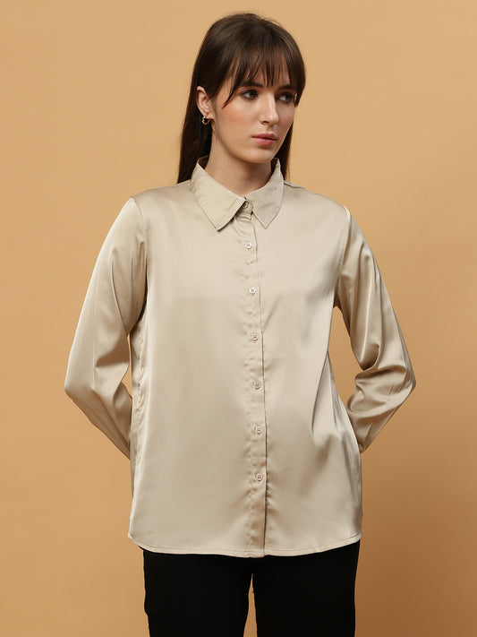 Beatnik Spread Collar Full Sleeve Western Satin White Womens Shirt