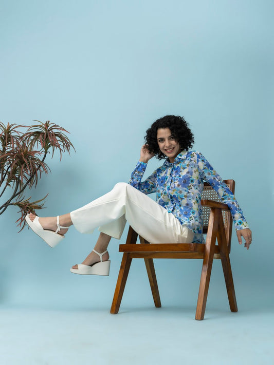 Beatnik Blue Collar Georgette Womens Western Shirt