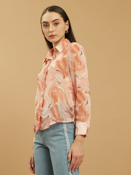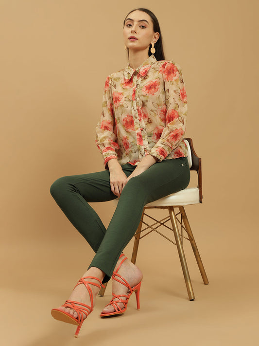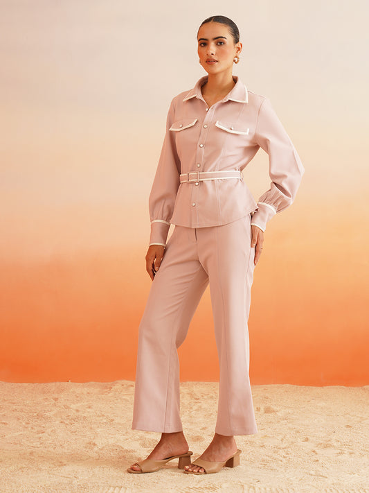 Crepe Cuffed Sleeves Full-Length High Rise Bottom Onion Pink Co-ord Set