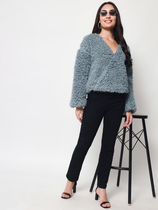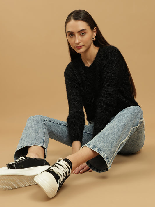 Beatnik Black Glitter Regular Full Sleeves Pull Over Women's Sweaters