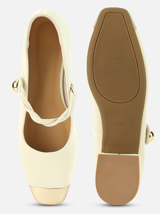 Beatnik White Western Style Casual Pumps for Women with Gold Toe & Bell Tie