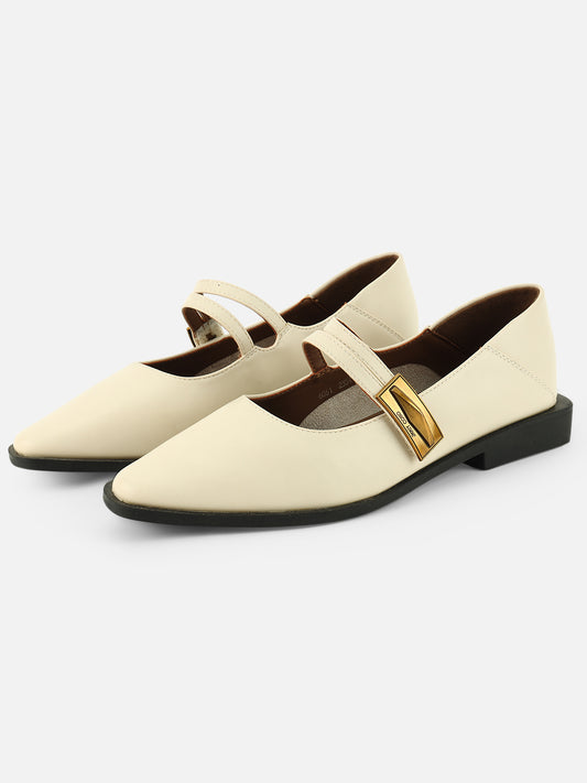Beatnik Elegance: Buckled Beauty for Effortless White Glam Pumps