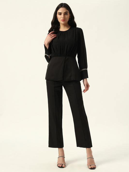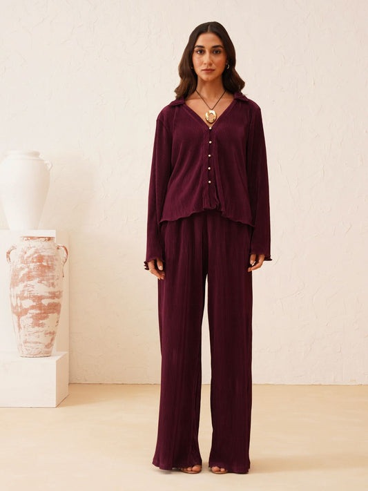 Wine Color Luxe Satin Two Piece Women Co-ord Set