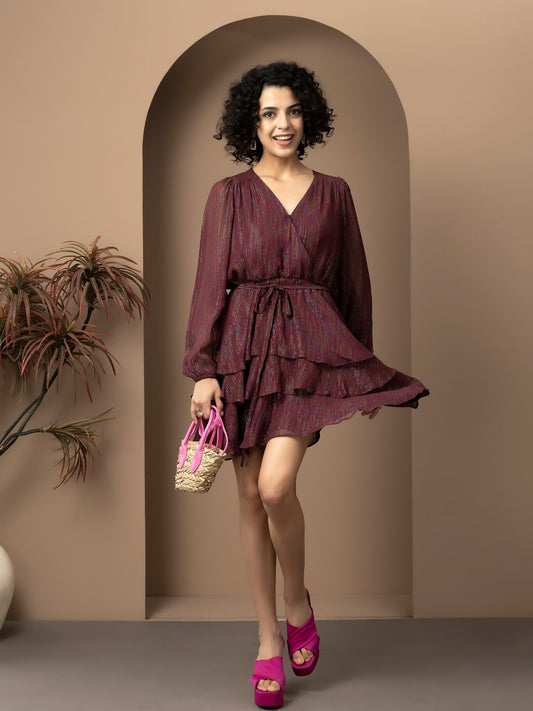 Beatnik Party Wear Puff Sleeves Shimmer Wrap Orange Top