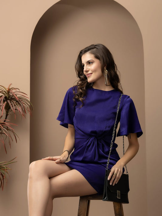 Solid Color Empire Dress with Draped Knot
