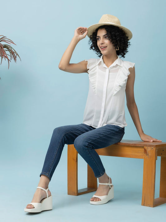 Smart Button-Down Shirt Style White Crop Top