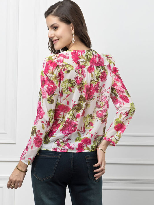 Beatnik Peasant Hip Length Hot Pink Top