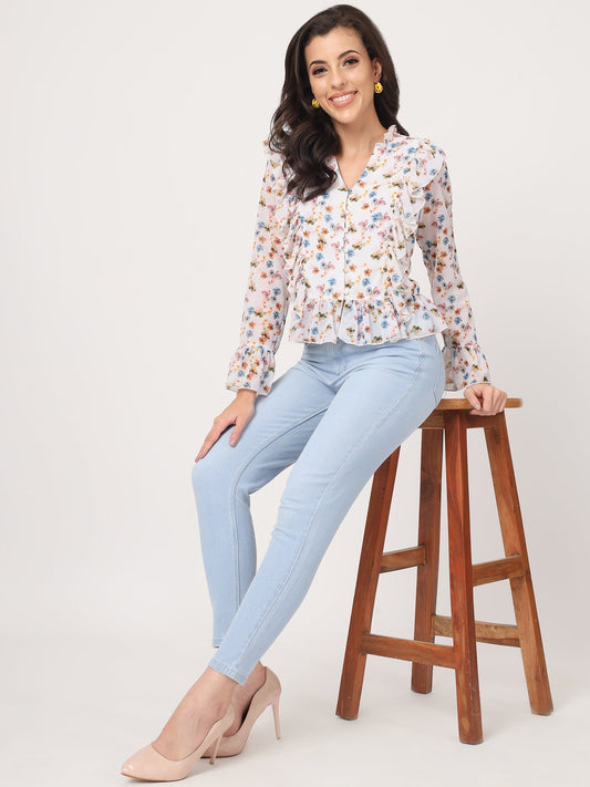 Ankle-Length Light Blue Slim Fit Cotton Denim
