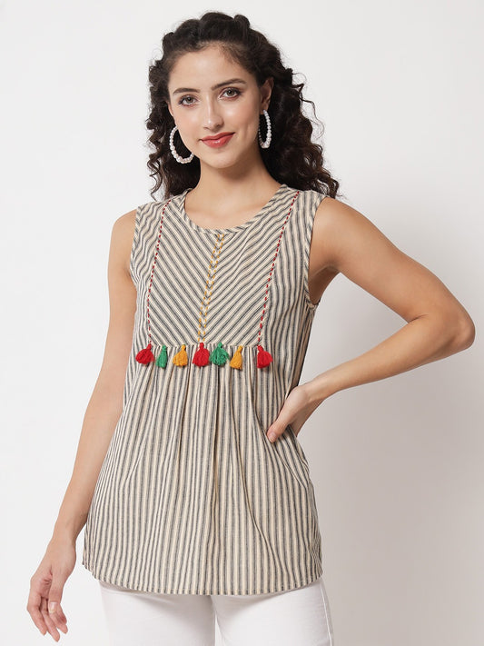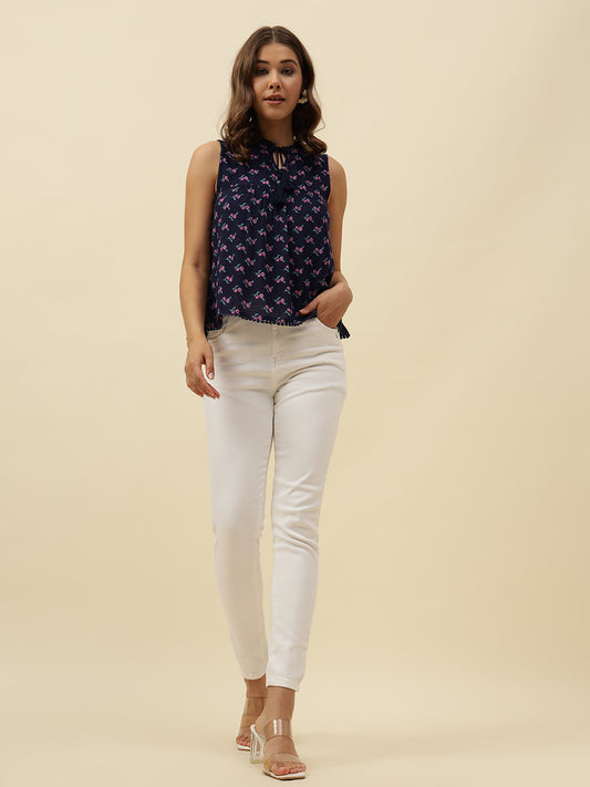 Beatnik Cotton Round Neck Blue Womens Top