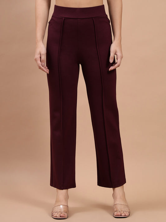 Beatnik Ankle Length Fitted Solid Maroon Treggings