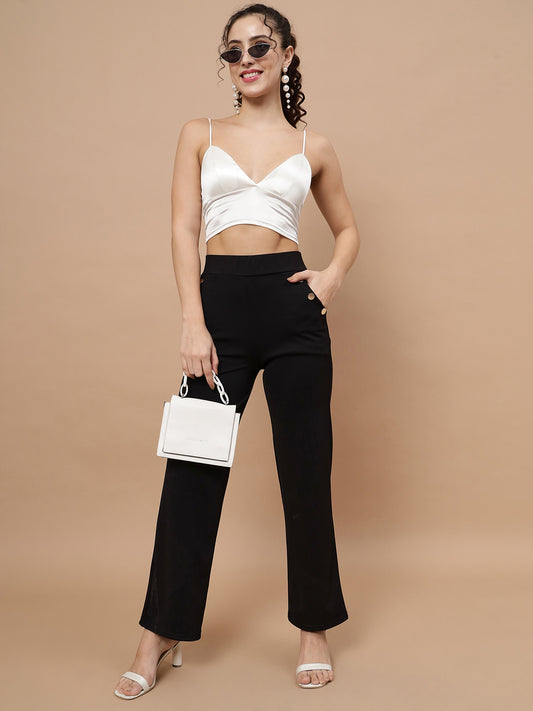 Beatnik Solid Ankle Length Fitted Black Treggings