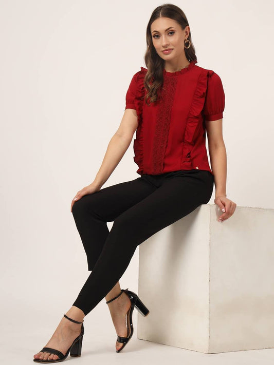 Beatnik Women’s Ruffle Lace Casual Maroon Top