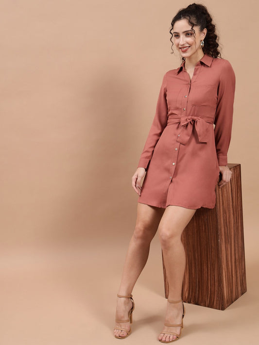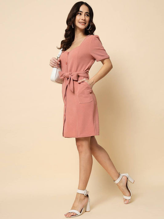 Beatnik Georgette Fitted Solid Haff Sleeve Pink Women Dresses