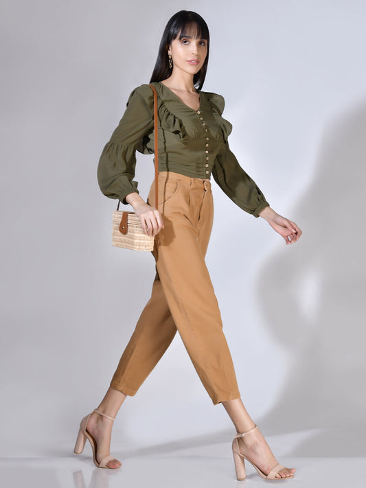 Solid Fit n Flare Smoked Puff Sleeve Dark Red Dress