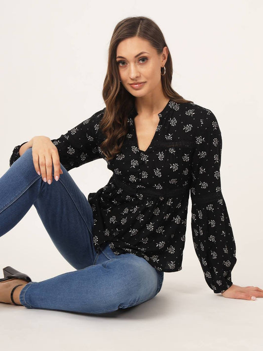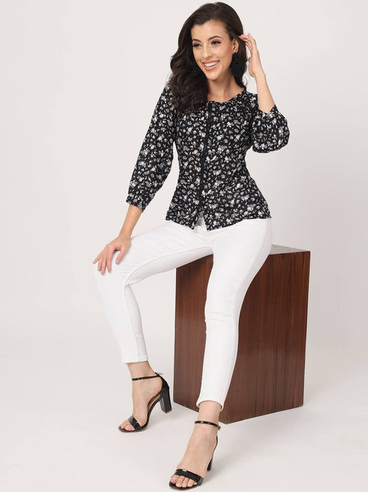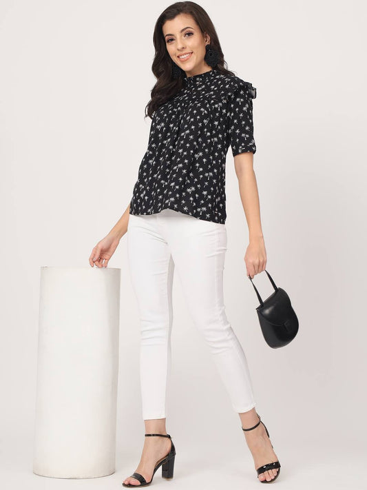 Beatnik Rayon Regular Printed Haff Sleeve Black Women Top
