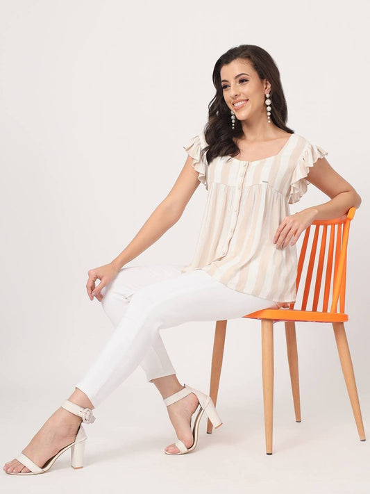 Beatnik Grey Dobby with Ruffled Sleeves Top