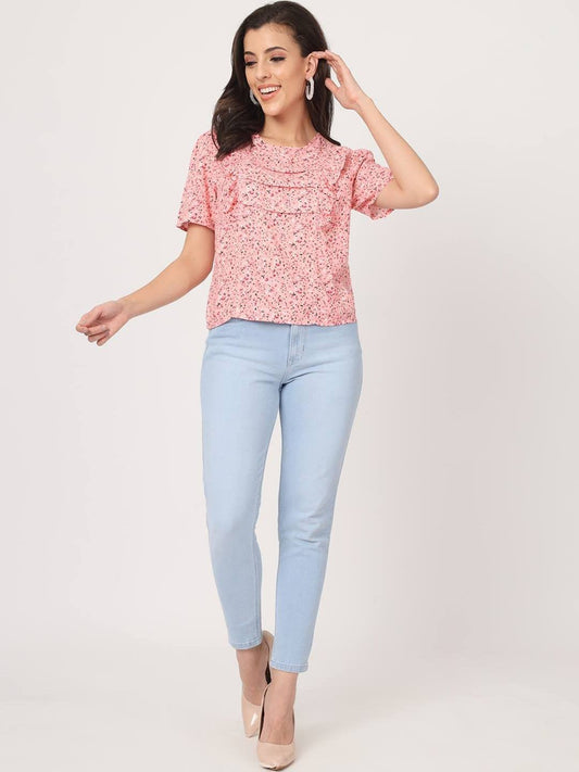 Beatnik Loose Fit Printed Half Sleeve Pink Women Top