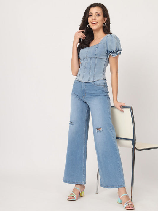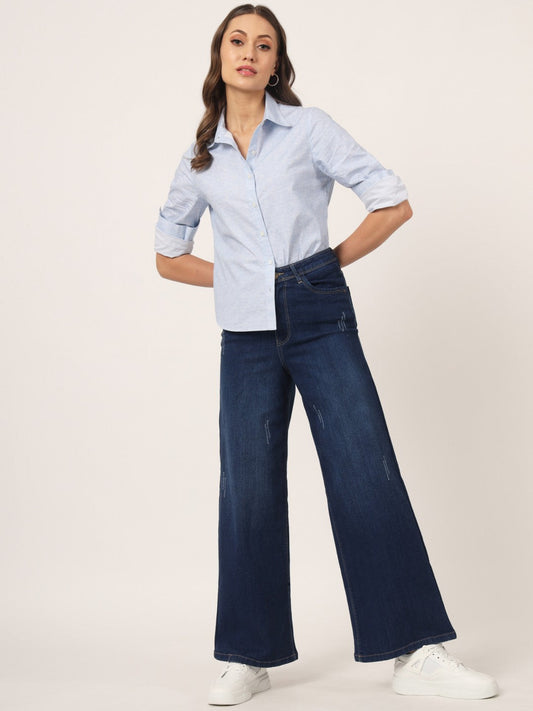 Beatnik Denim Blue Full Length Flared Mid-Rise Casual Wear Denim Jeans