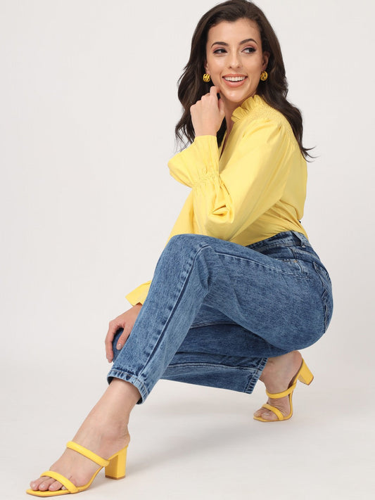 Beatnik Solid Casual Wear Stretchable High-Rise Blue Denim Ankle Length Slim Fit Jeans