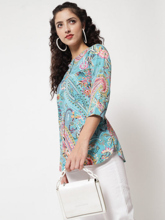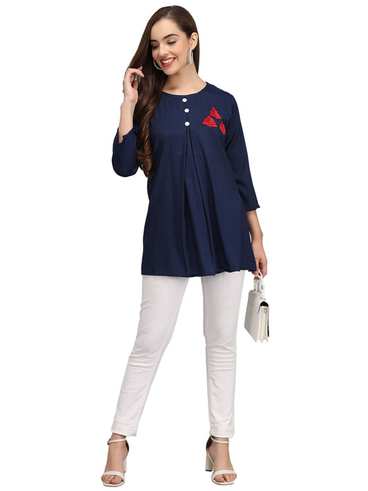 Beatnik Rayon Round Neck Blue Womens Tunic