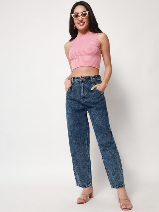 Beatnik Solid Casual Wear Non-Stretch High-Rise Blue Denim Full Length Balloon Fit Jeans