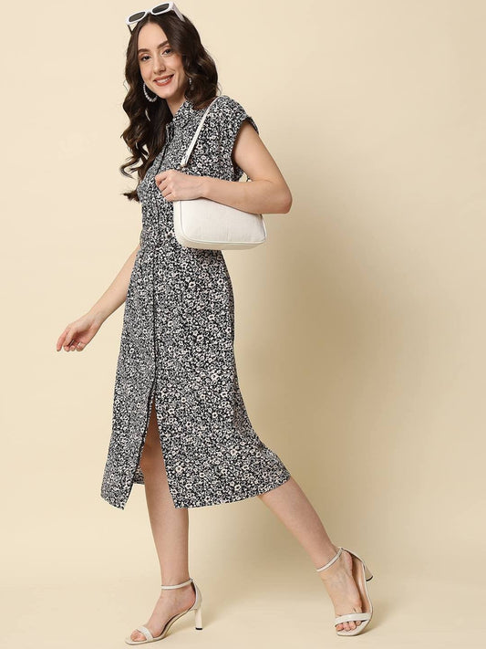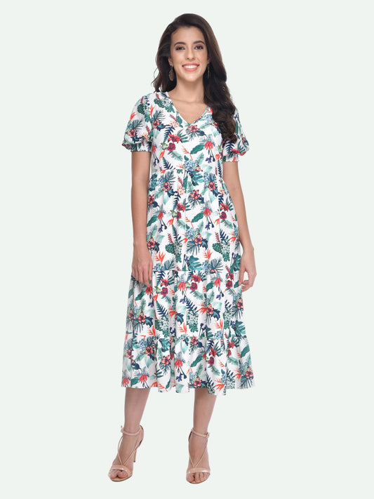 Beatnik Printed Casual Wear Half Sleeve A-line Midi Dresses