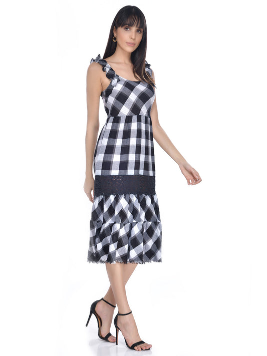 Beatnik Checkered Casual Wear Sleeveless Sheath/Fit n Flare Dresses