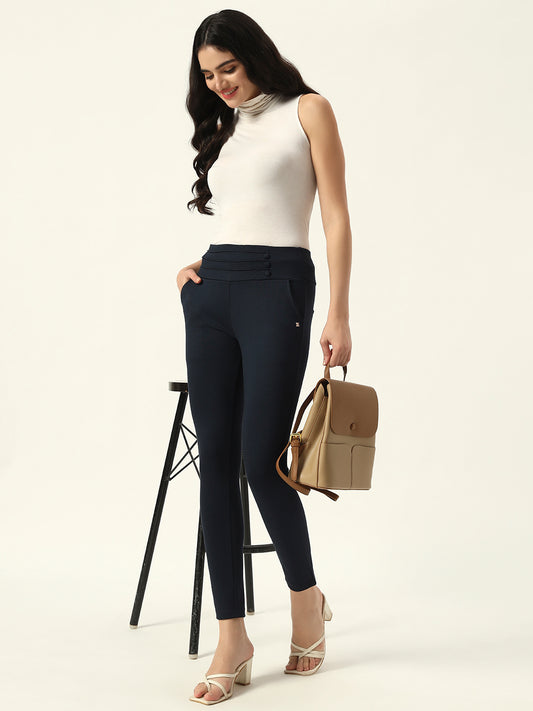 Beatnik Solid Ankle Length Fitted Midnight Blue Treggings