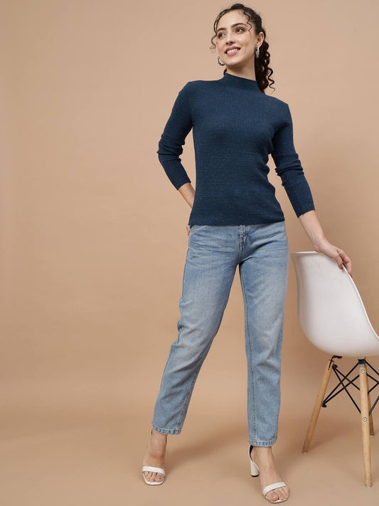 Beatnik high neck Pull Over with lurex Navy Blue Sweater