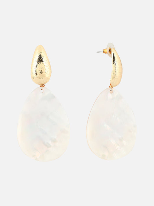 Beatnik Women's Gold-Plated White Fabric Floral Drop Earrings | Elegant Western Fashion Earrings