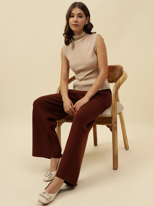 Pull Over Beige Sleeveless Turtle Neck Sweaters