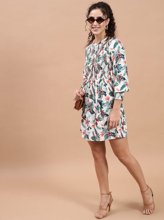Smocking Sleeves and Neck Midi Floral A-Line Dress