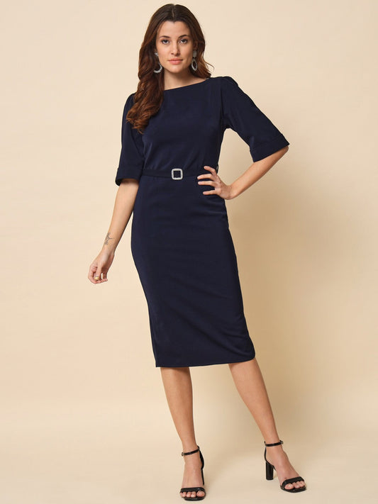 Beatnik Fitted Solid Half Sleeve Teal Blue Women Dress