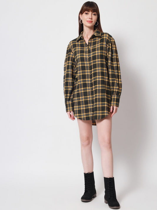 Fitted & Flare Checked Print Casual Wear Midi Dress