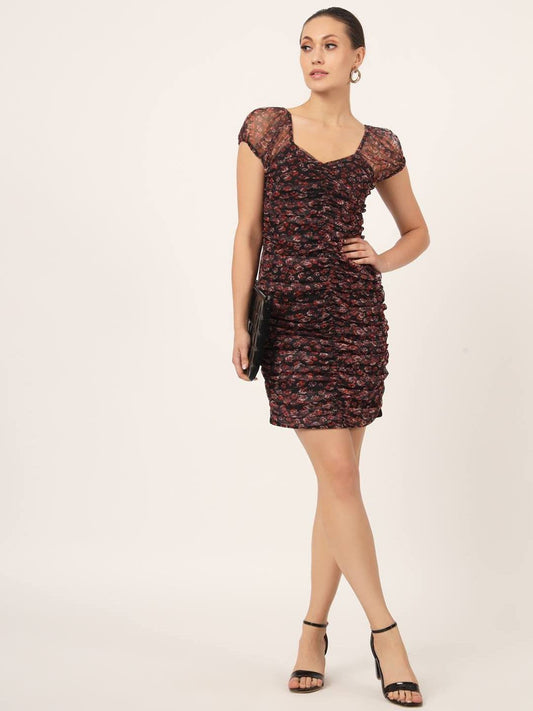 Beatnik Fit n Flare Printed Shorts Sleeve Maroon Women Dresses