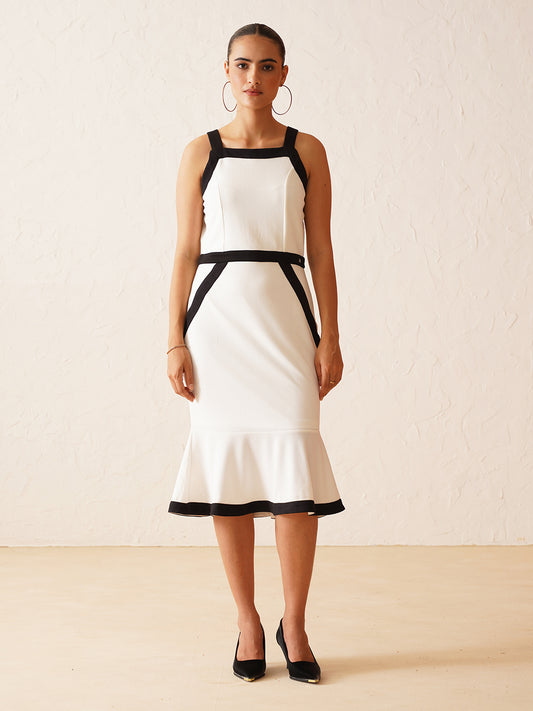 Black and White Color Block Bodycon Dress in Maserati Fabric
