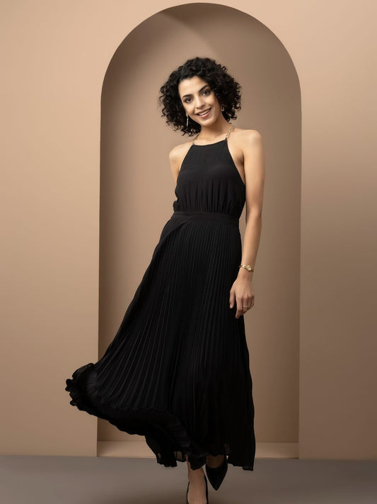 Beatnik Glamorous Evening Wear Black Maxi Georgette Dress