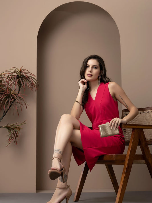 Sleek Solid Color Bodycon Pink Dress in Maserati Fabric