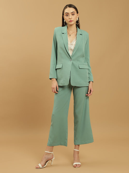 Sea Green 2 Pieces Notched Lapel Single-Breasted Blazer & Pant Suit