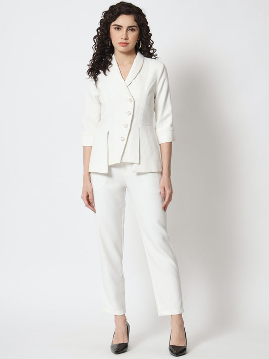 Regular Slim Fit 2 Pieces Notched Lapel Western White Blazer Pant Suit