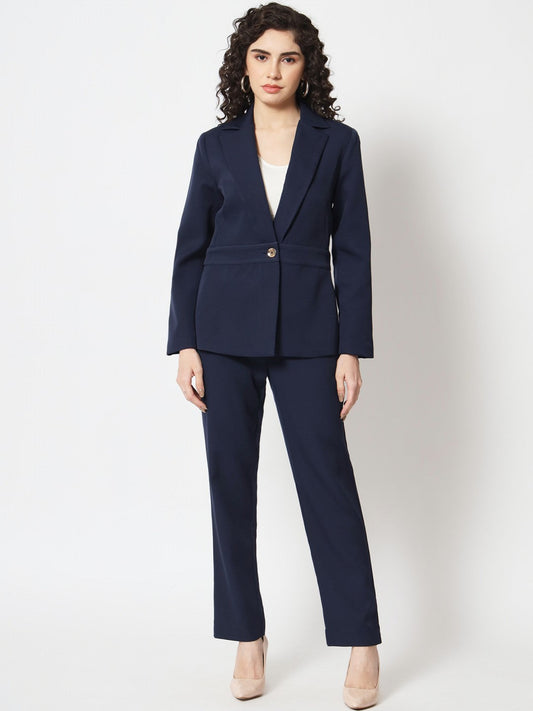 Women Navy Blue Single-Breasted 2-Piece Formal Suit