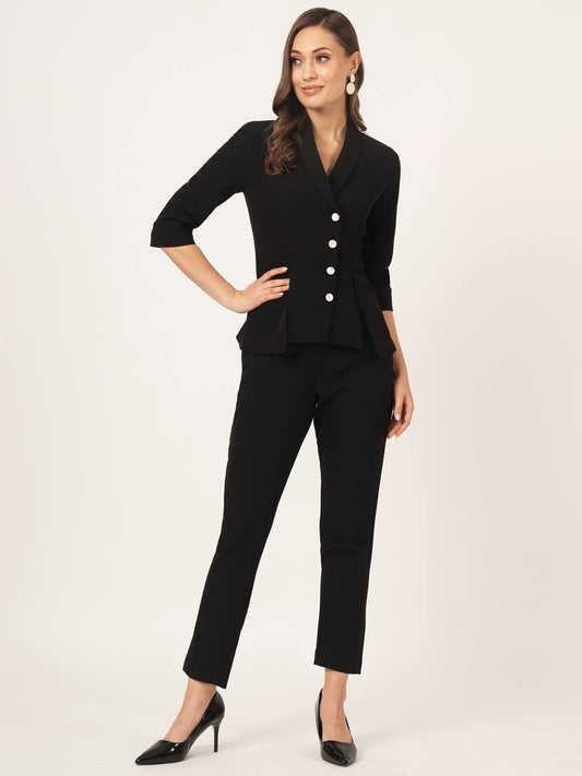 Black Regular Slim Fit 2 Pieces Notched Lapel Western Pant Suit