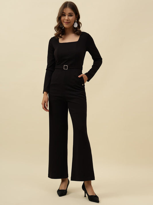 Beatnik Cotton Blend Square Neck Black Women Jumpsuits